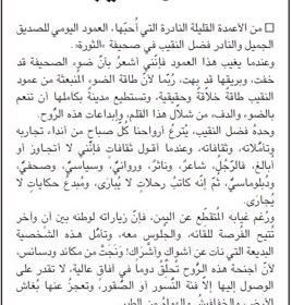 بقلم خالد الرويشان من الأعمدة القليلة النادرة التي أُحبها العمود اليومي للصديق الجميل والنادر فضل النقيب في صحيفة الثورة. وعندما يغيب هذا العمود فإنني أشعر